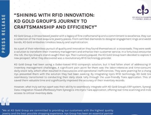 Irys, a company focused on enabling RFID, exclusively for the Gems & Jewellery industry, was chosen to be the partner for this project.